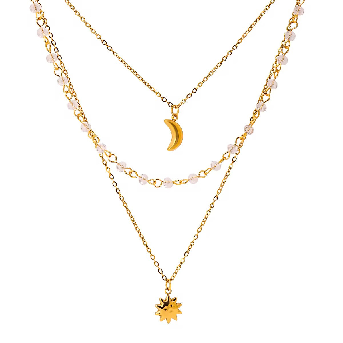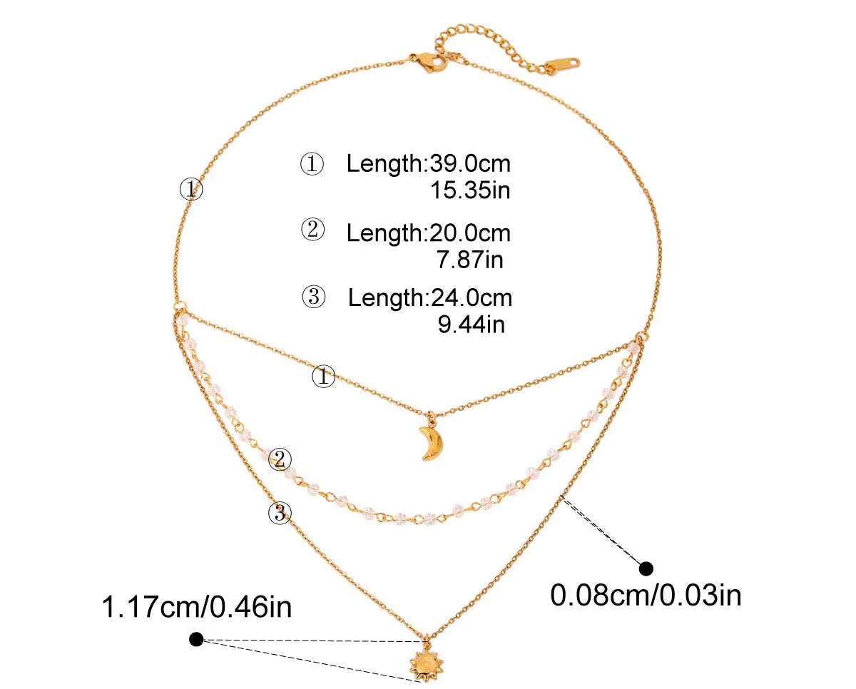 Delicate and dreamy, this triple-layer necklace features a half-moon, a star, and a floral charm, beautifully layered for a celestial yet feminine touch. Perfect for adding elegance and whimsy to any outfit