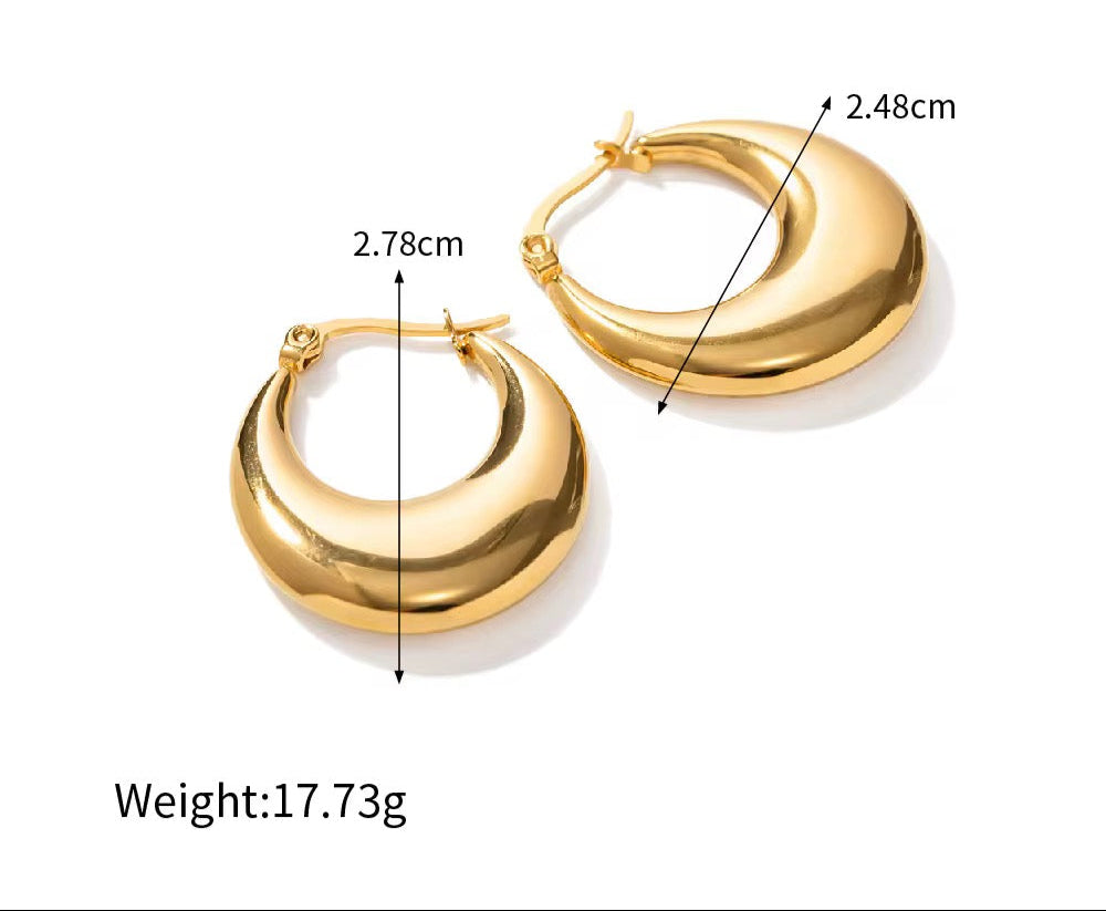 Inspired by timeless beauty, the Solara Earrings feature a sleek gold design in 18K gold-plated stainless steel. Waterproof and tarnish-resistant, they are the perfect finishing touch to elevate any look.