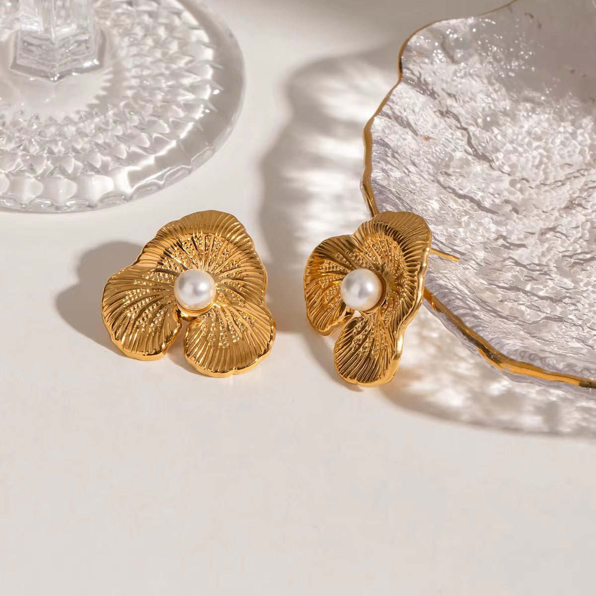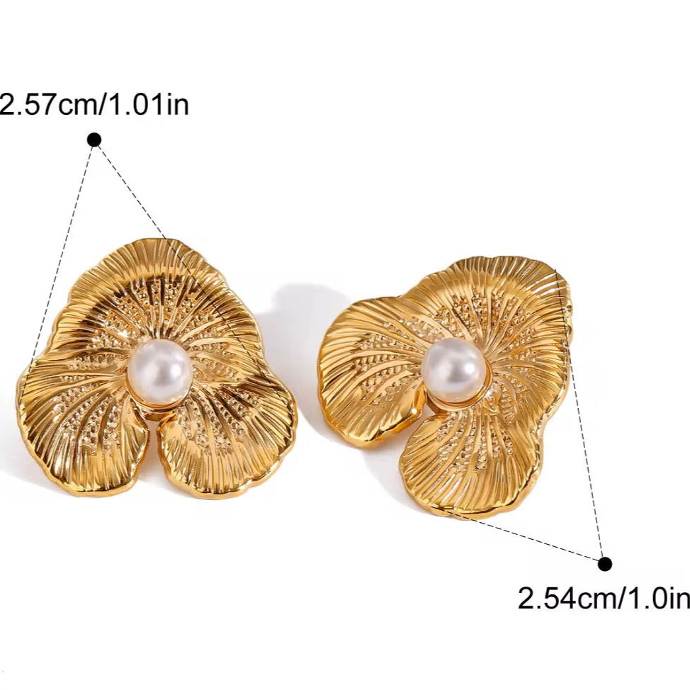 Delicate and feminine, the Patalia Earrings feature a graceful petal design in 18K gold-plated stainless steel. Waterproof and tarnish-resistant, they add a touch of timeless elegance to any outfit—perfect for everyday wear or special occasions.