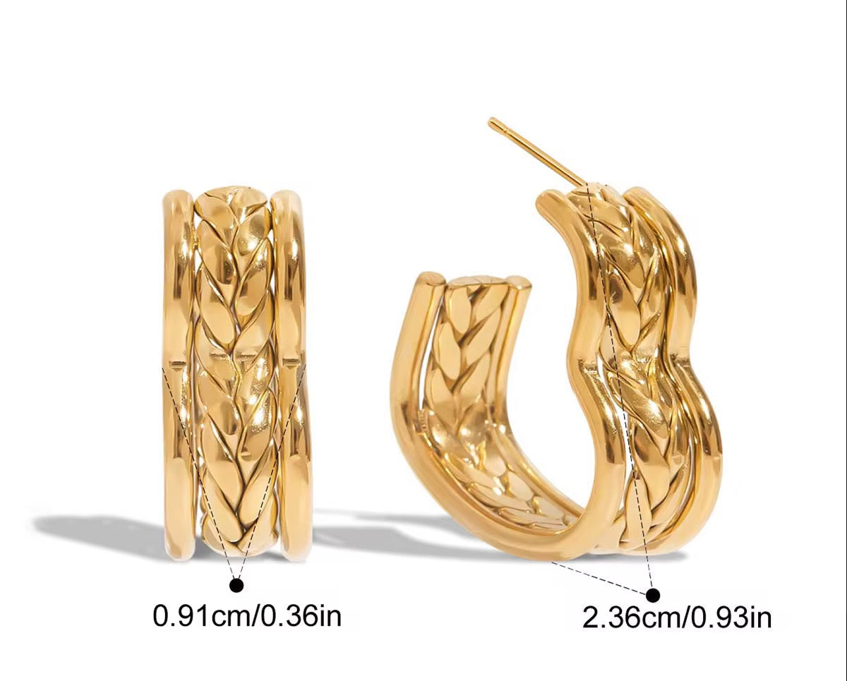 The WaveLace Earrings feature an intricate mesh-inspired design with graceful waves, crafted in 18K gold-plated stainless steel. Waterproof and tarnish-resistant, they offer a modern yet elegant statement, perfect for elevating both casual and formal looks.