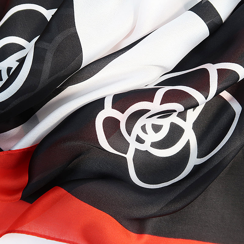 Fantastique, a simple and magnificent design with black flowers on a beautiful white canvas, this is the perfect daily driver. With a bright red trim, it has just enough sparkle to uplift your entire outfit.