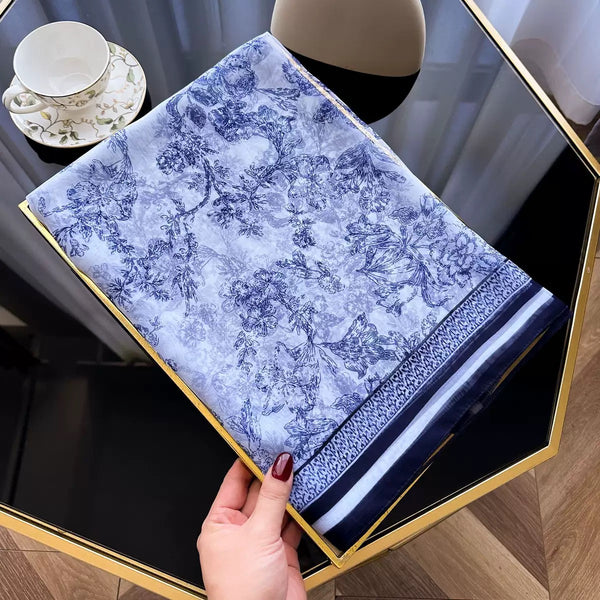 Intricate and regal, Elara features a rich navy damask motif against a soft ash base, creating a tapestry of timeless elegance. Its velvety texture and classic detailing make it a perfect companion for both festive soirées and formal flair.
