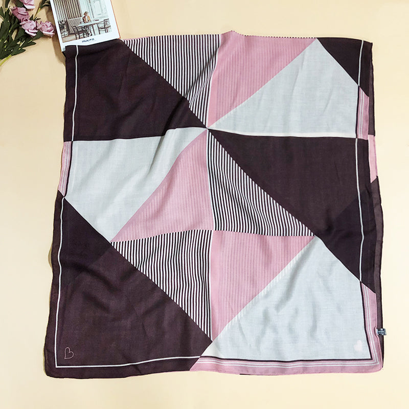 Indulge in sweet style with the Confectionery scarf, a delightful accessory that will satisfy your fashion cravings. Featuring a playful pattern of pink, maroon, and beige triangles split by bold lines, this scarf is a treat for the eyes.